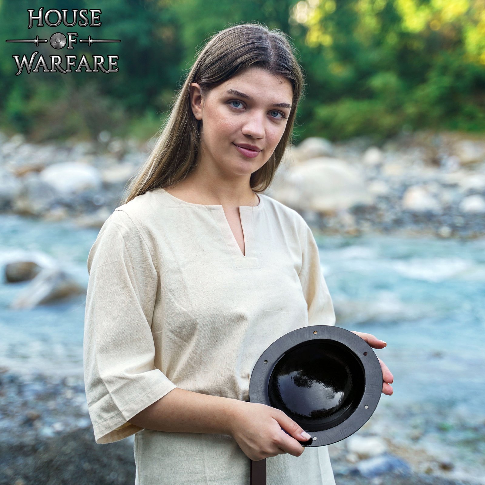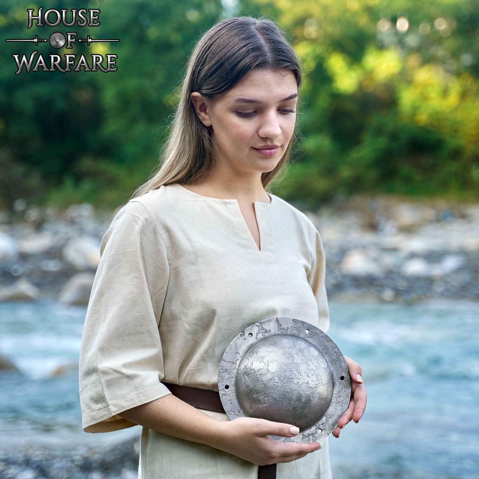 Perfect for LARP warriors, and DIY armorers, this umbo provides both historical style and rugged practicality. Its hammered texture mirrors period blacksmithing and looks striking in both daylight and torchlight during events.